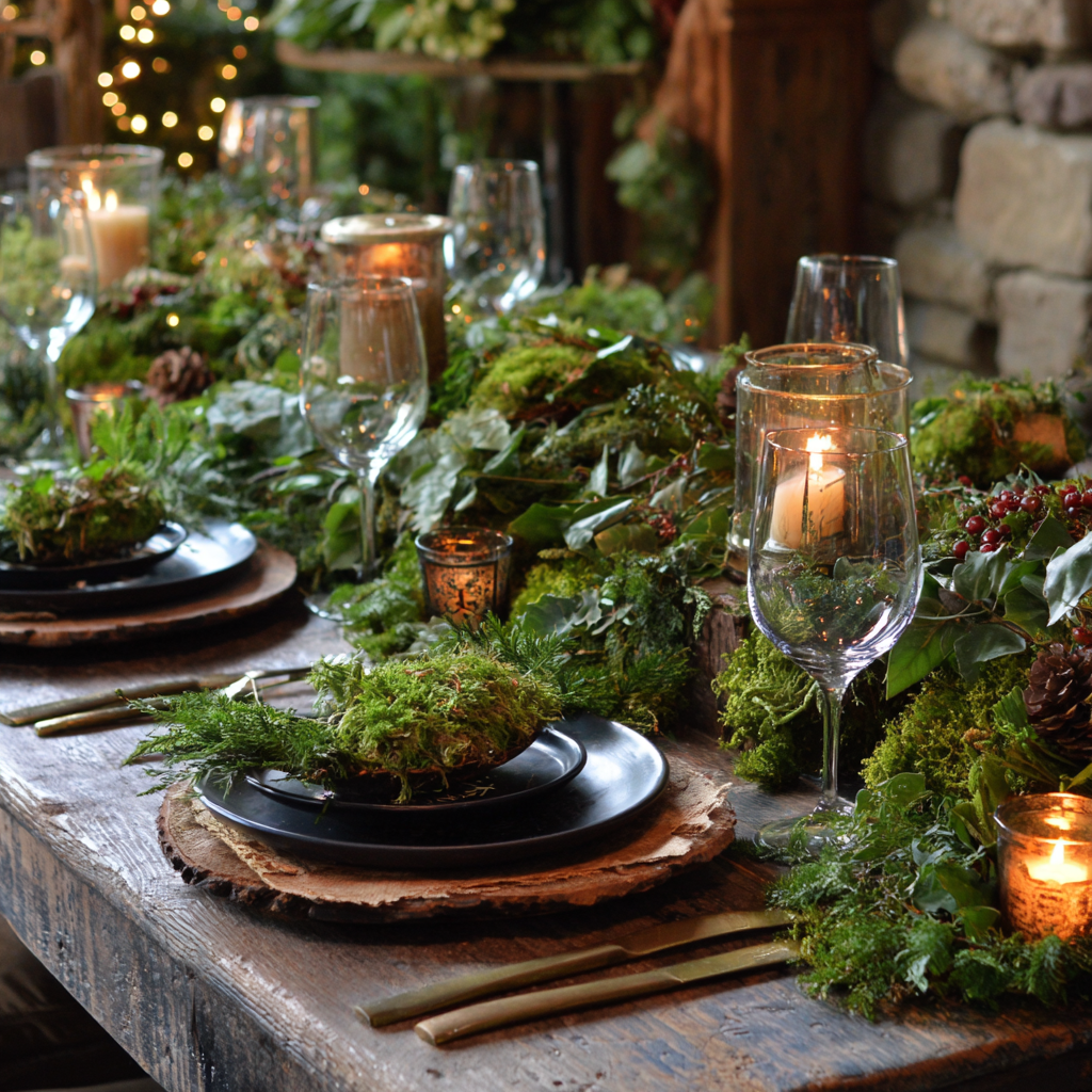 • Greenery centerpieces (like eucalyptus or pine branches)