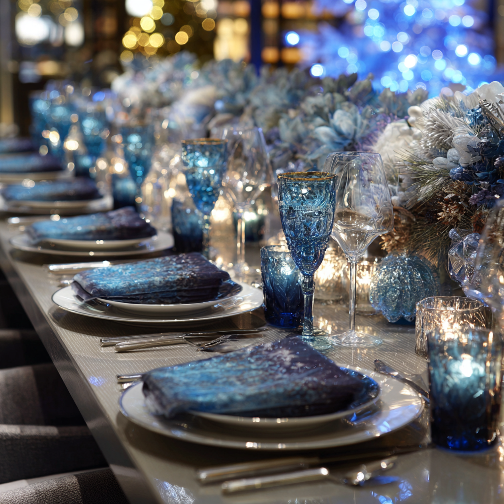 Want something a little less traditional? Cool tones like icy blue and silver feel fresh, modern, and surprisingly festive.