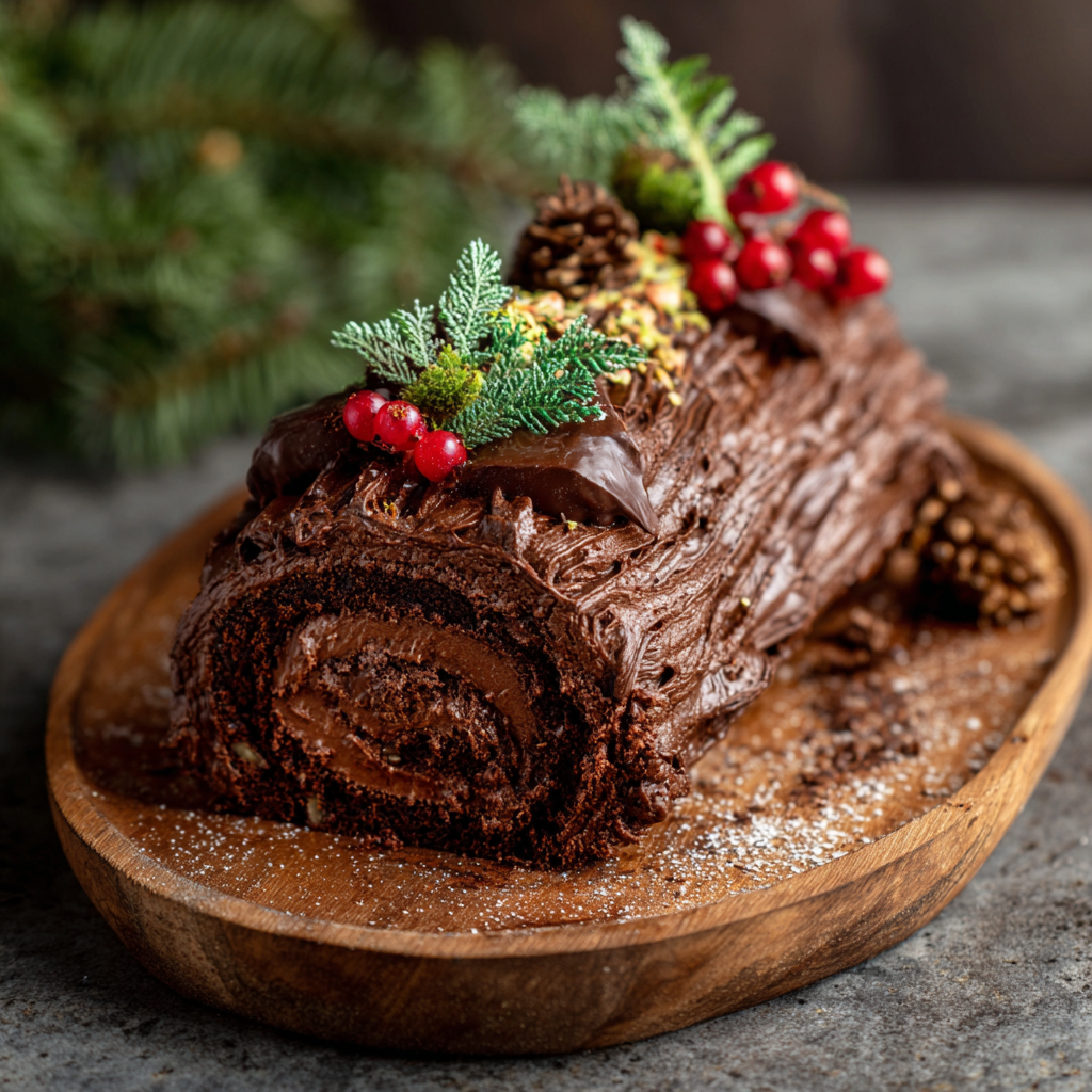 Let’s end on a high note: chocolate yule log, aka the pièce de résistance.