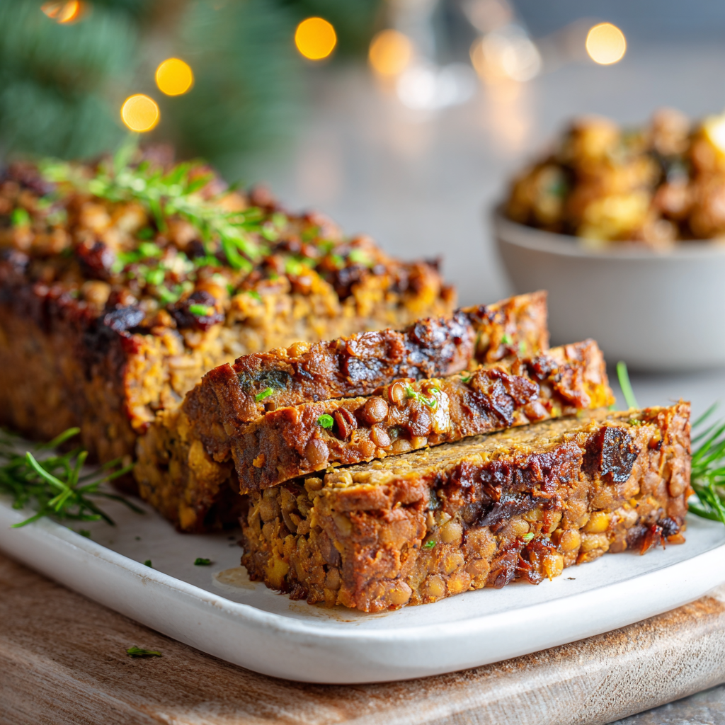 If you want a hearty, protein-packed centerpiece, lentil loaf is your friend. Think of it as a vegan version of meatloaf, but way more festive.