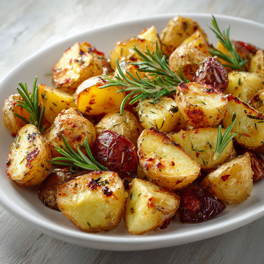 Toss baby potatoes in olive oil, minced garlic, and chopped rosemary, then roast until golden. The edges get crispy, the centers stay fluffy, and the smell? Heavenly.