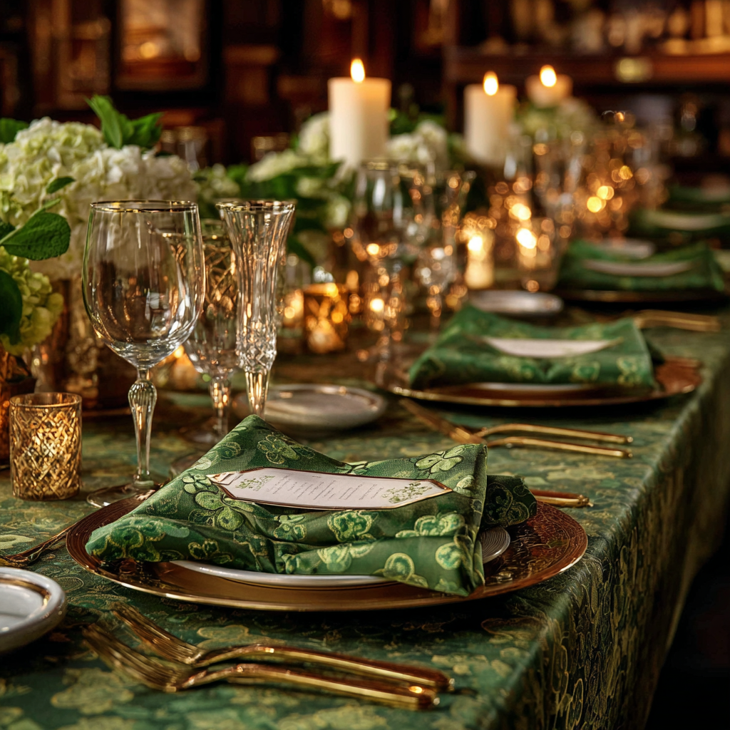 If you want a foolproof starting point, green and gold never fail. This combo instantly says St. Patrick’s Day without trying too hard. I used this theme last year, and it photographed like a dream—even under bad lighting.