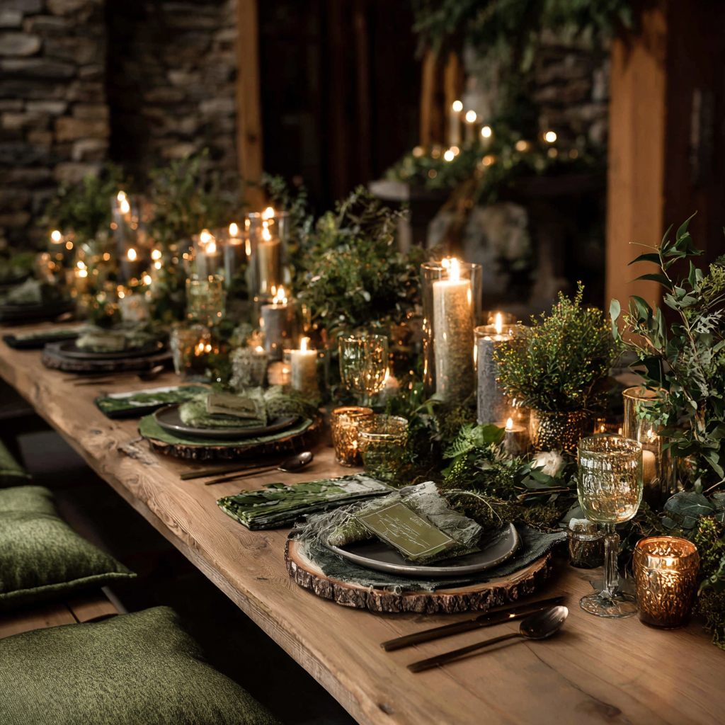 10. Candlelit Green Tablescape for Cozy Vibes