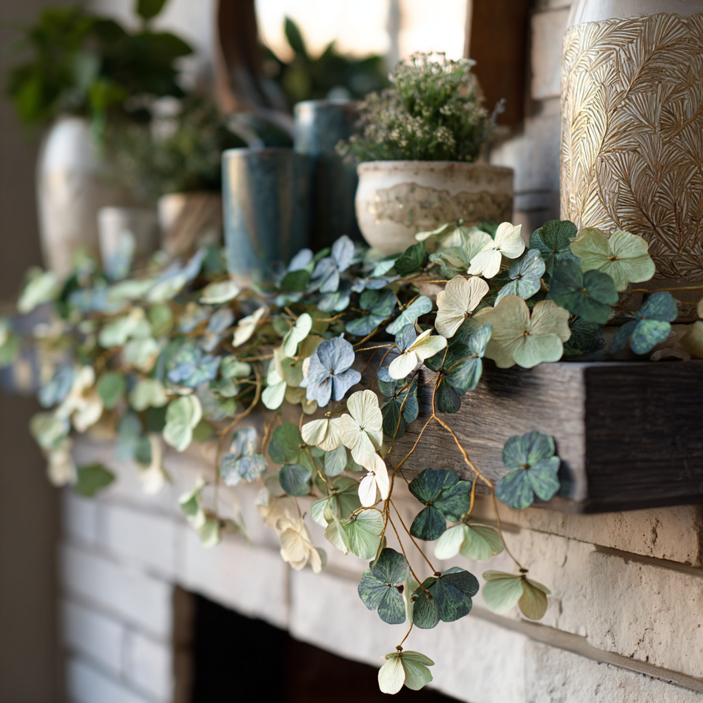 The secret to a cozy St. Patrick’s Day mantel is balance. A few intentional elements — greenery, soft textures, and touches of shamrock charm — can create a warm seasonal look that still feels calm and inviting.