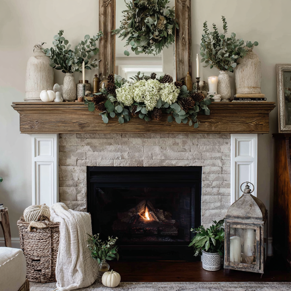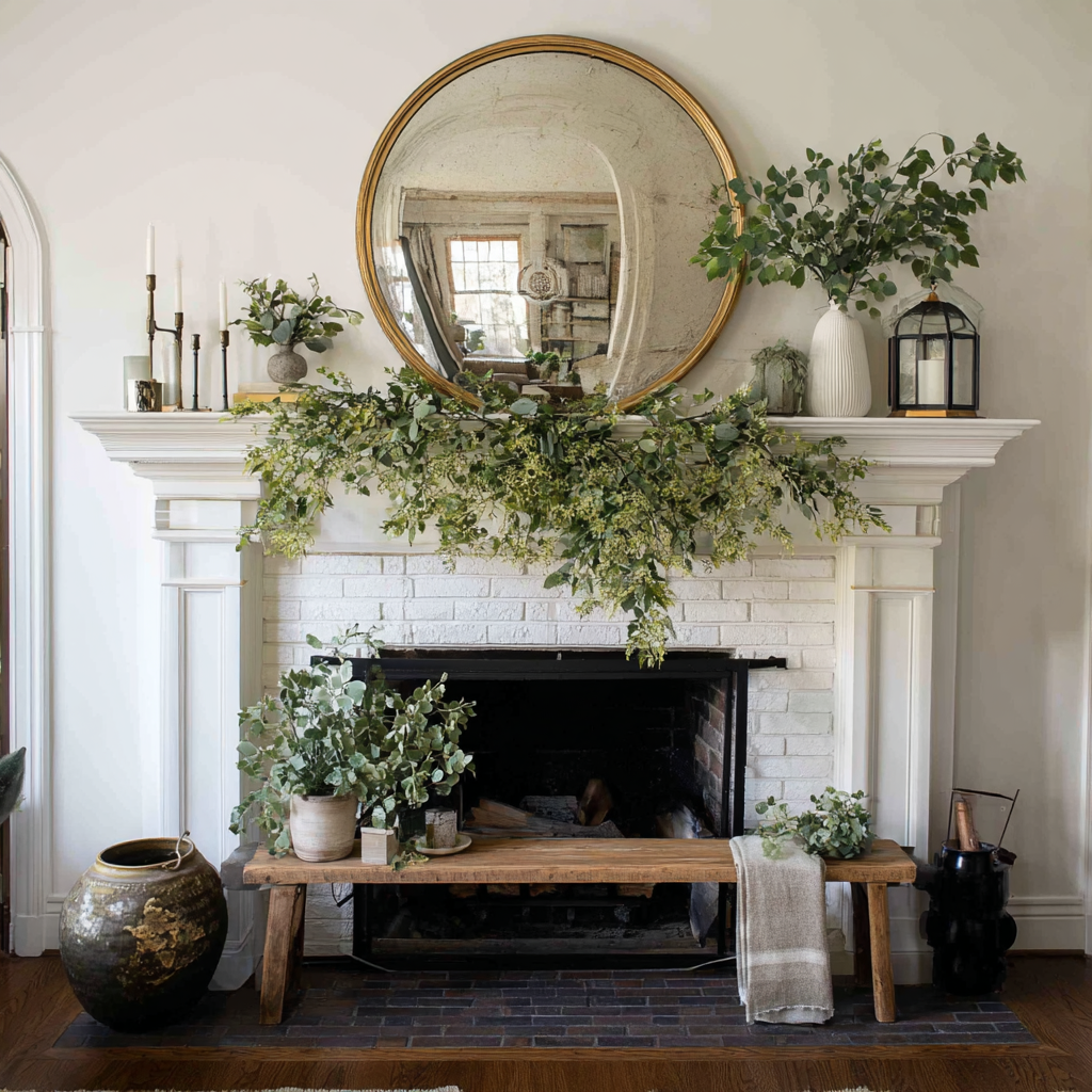 10. Neutral Mantel with Green Accents
