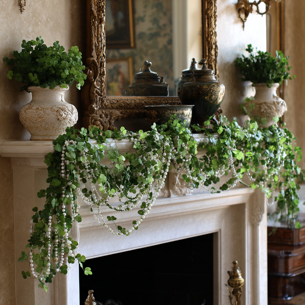 A simple shamrock garland draped across the mantel instantly sets the St. Patrick’s Day mood.