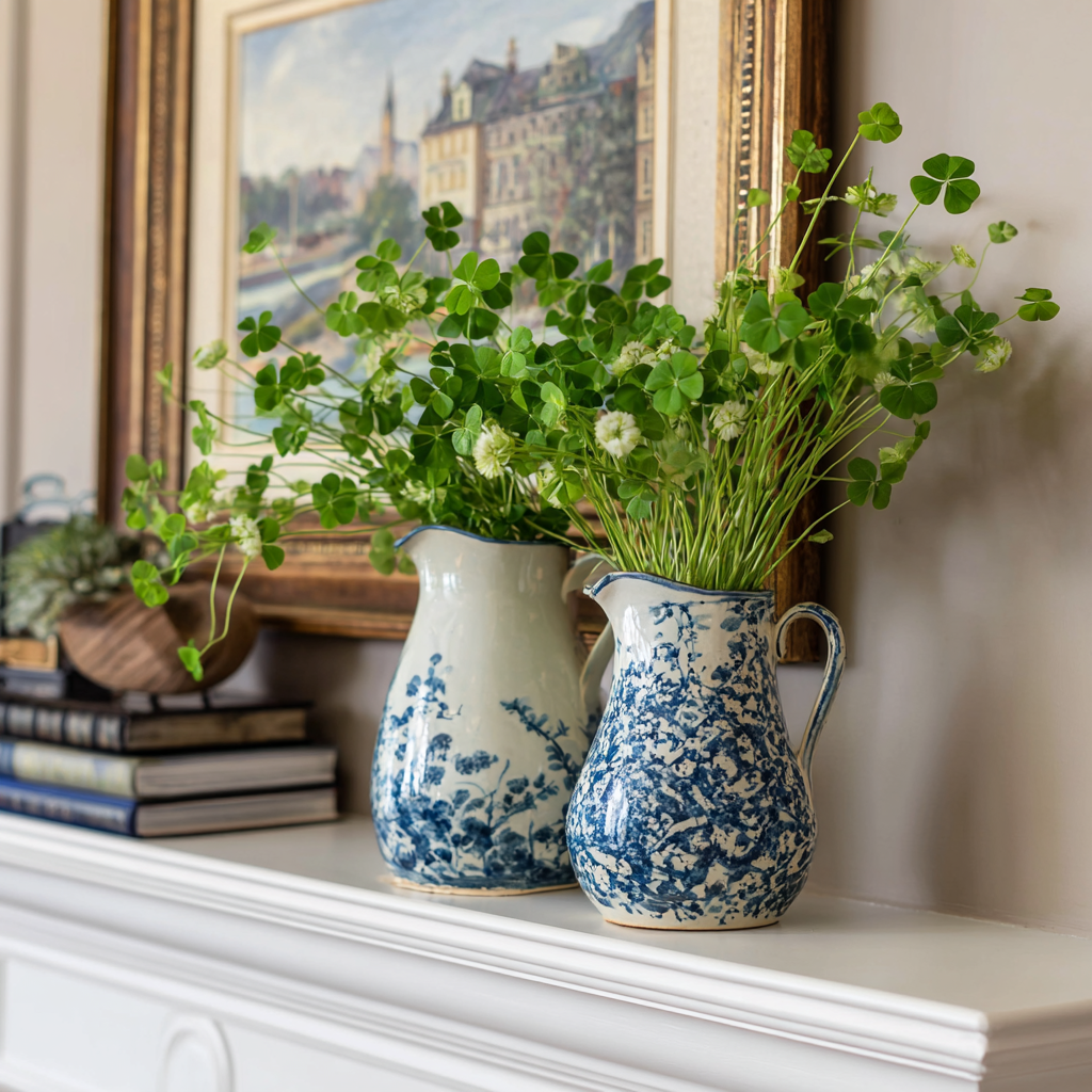 Fill a ceramic pitcher with faux or fresh clover stems.