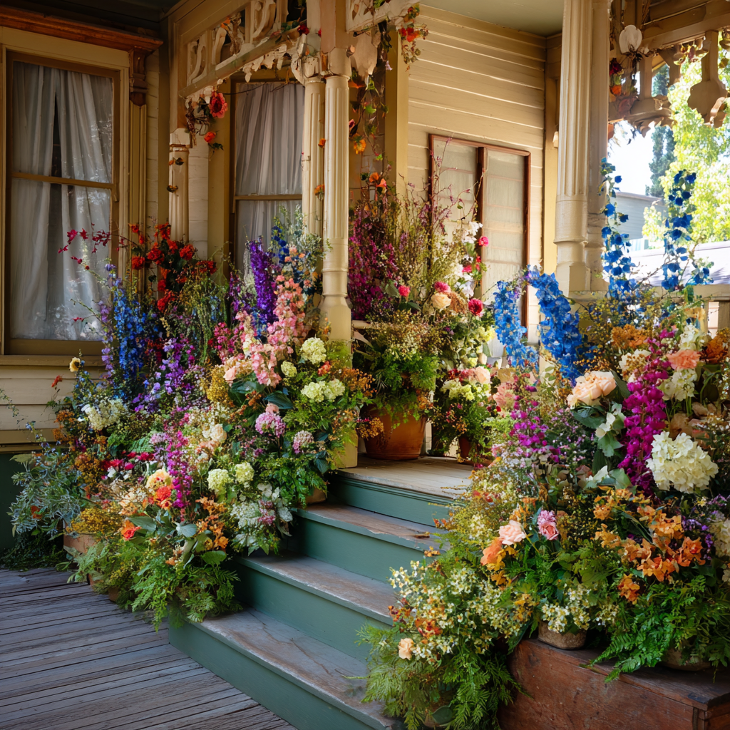- Plant green, yellow, and white blooms in pots or window boxes.