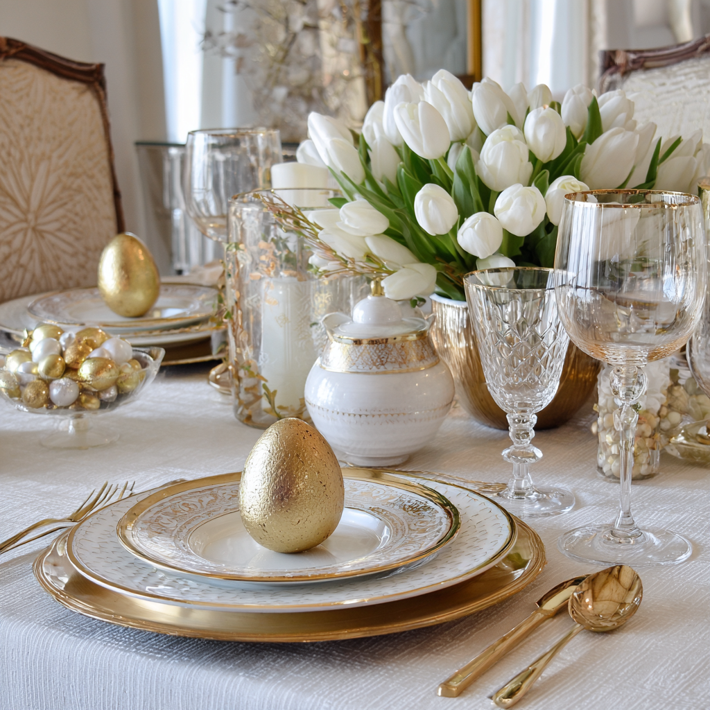 5. Elegant Gold & White Easter Table