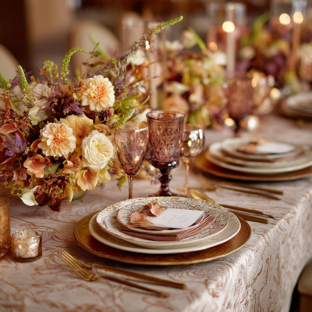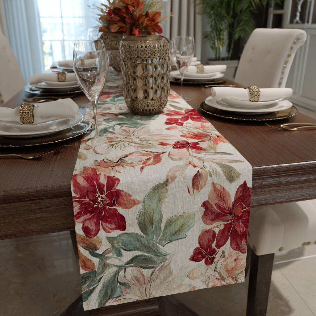 A floral table runner can instantly transform a plain table. It acts as the foundation for your entire look.